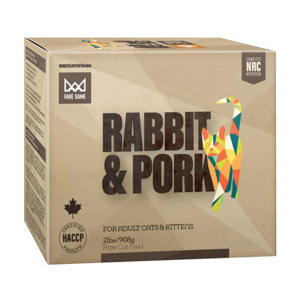 - Rabbit with Pork. A blend of Canadian rabbit with pork organ meat with barley grass and wheatgrass.