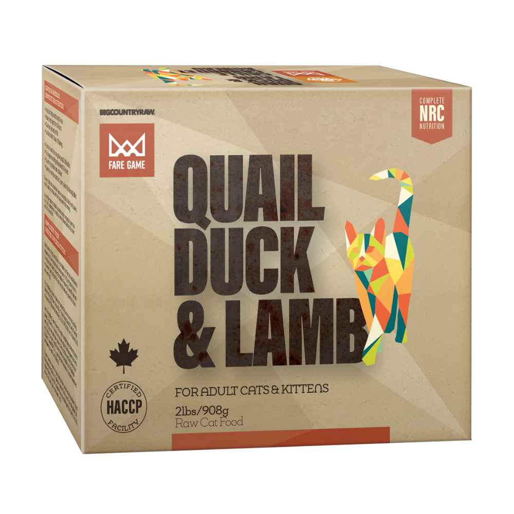 - Duck and Quail with Lamb. A blend of Ontario duck and quail meat and bone, with lamb organ meats, barley grass, and wheatgrass.