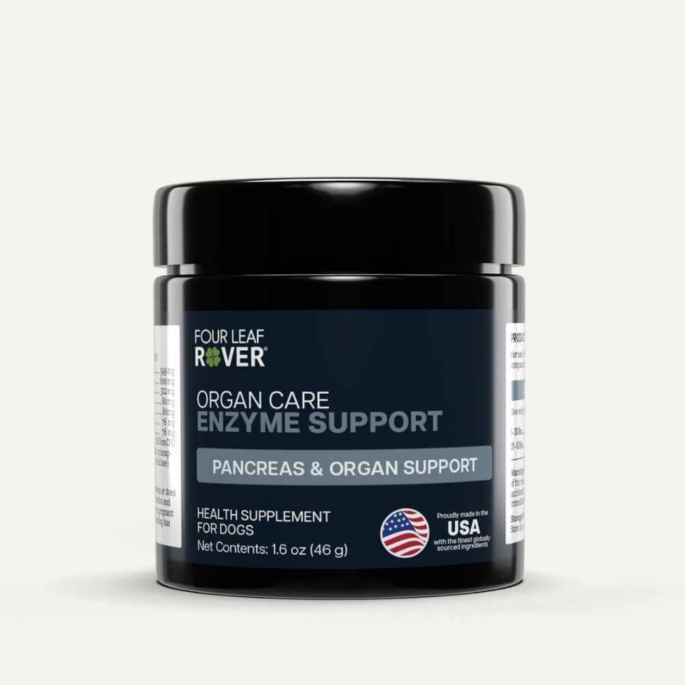 Four Leaf Rover Organ Care (Digest) is a natural supply of digestive enzymes dogs need, bovine pancreas and soil-based probiotics to support a healthy gut and digestion.