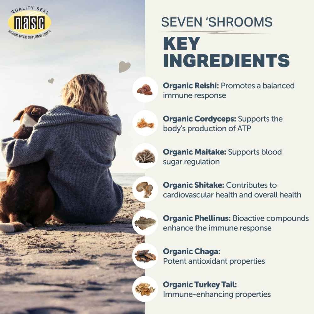 - Veterinarian formulated: Each mushroom in Seven Shrooms has been carefully chosen for a synergistic effect on the gut, liver, kidneys and immune system.