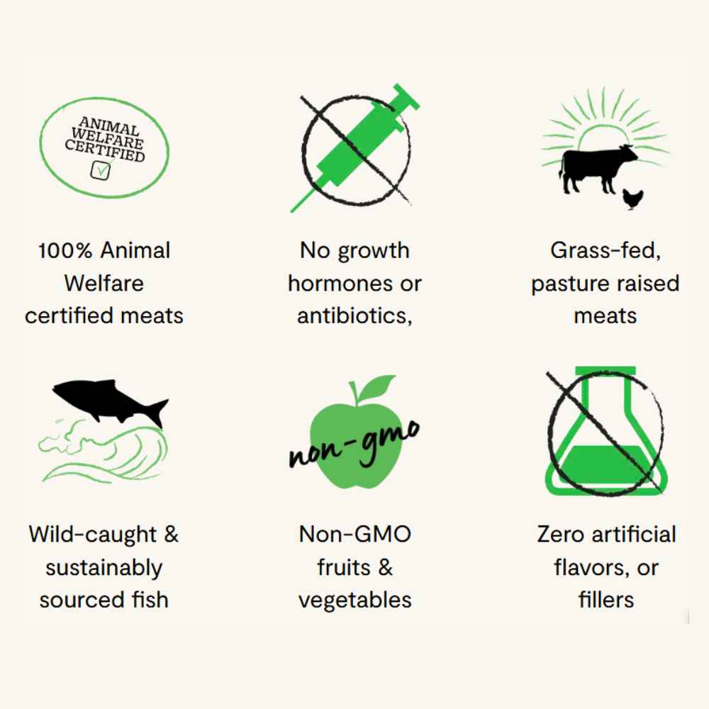 Open Farm ensure that all their products are created with all-natural, human-grade ingredients, and no fillers like grains, meal, or potatoes. Each and every ingredient can be traced back to its origin and each farm, plant, and processing facility it originated from. All protein suppliers are thoroughly audited to ensure they abide by strict animal welfare practices when raising their animals.