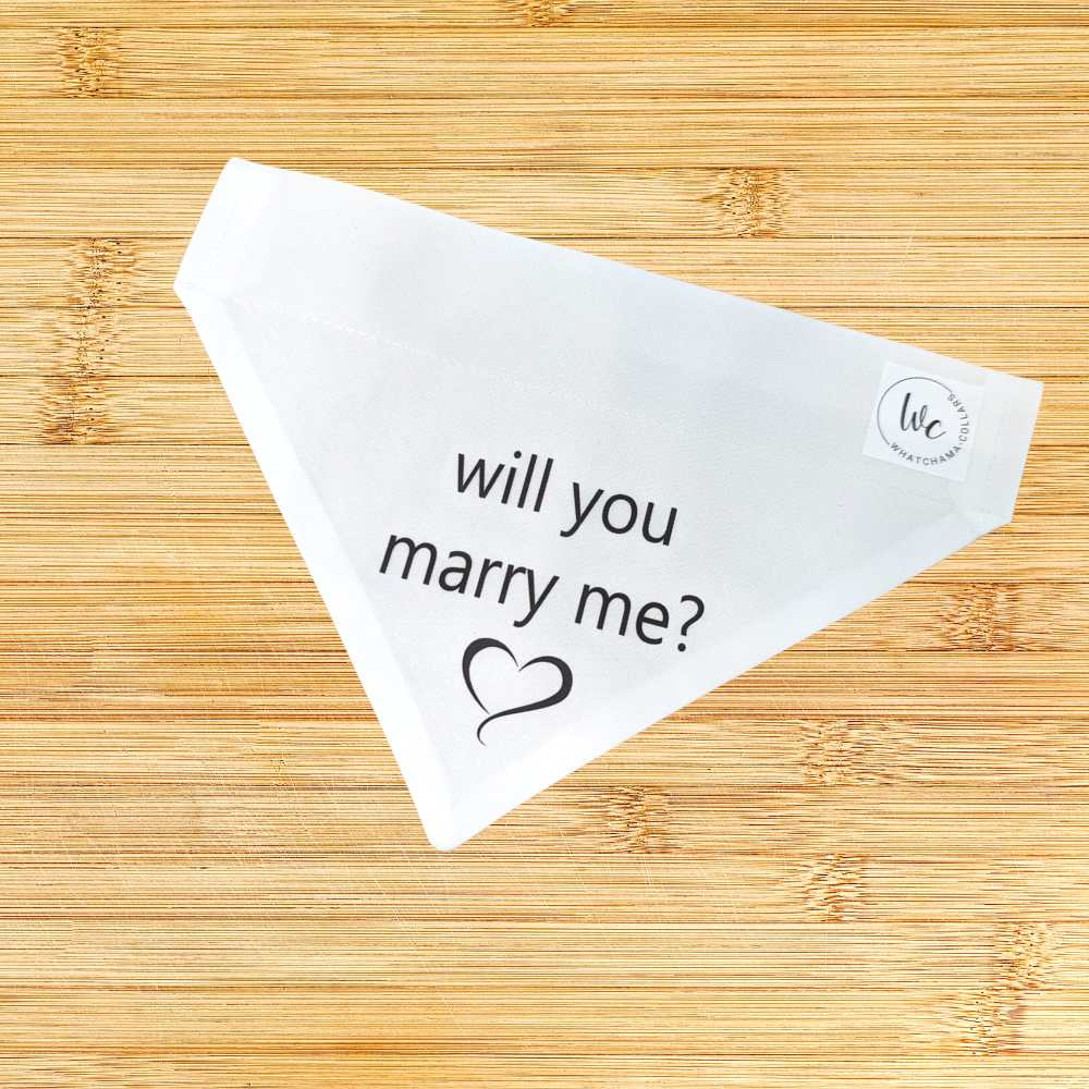 Locally made super cute proposal bandanas by Whatchama Collars! We’re proud to carry and collaborate with Whatchama Collars to bring you and your pets some unique and fun wear.