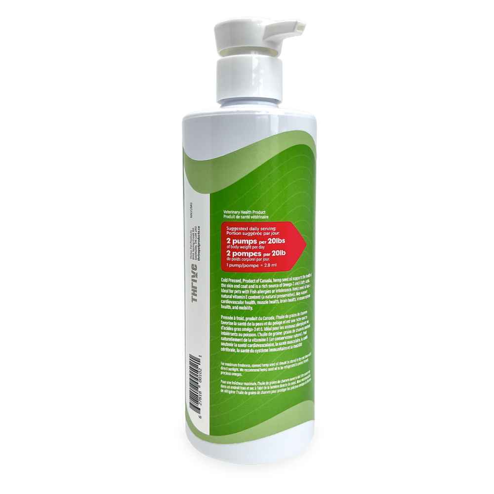 Hemp seed oil is recommended on a red meat based diet, or in rotation with a fish oil (Thrive Herring oil or Thrive Salmon oil) on a regular rotational diet.