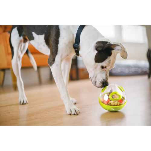 Your pup loves to play, and there is nothing more exciting than when treats are part of the equation! P.L.A.Y.’s Wobble Ball dog toy is a perfect combination of play time and mental stimulation. The interactive dog treat puzzle toy is uniquely shaped to roll around unpredictably to your fluffy friend’s delight. Coupled with the sound and sight of dog treats spinning inside, the Wobble Ball dog treat ball stimulates your pet mentally and physically with hours of interactive fun and enrichment.